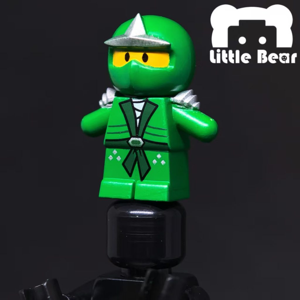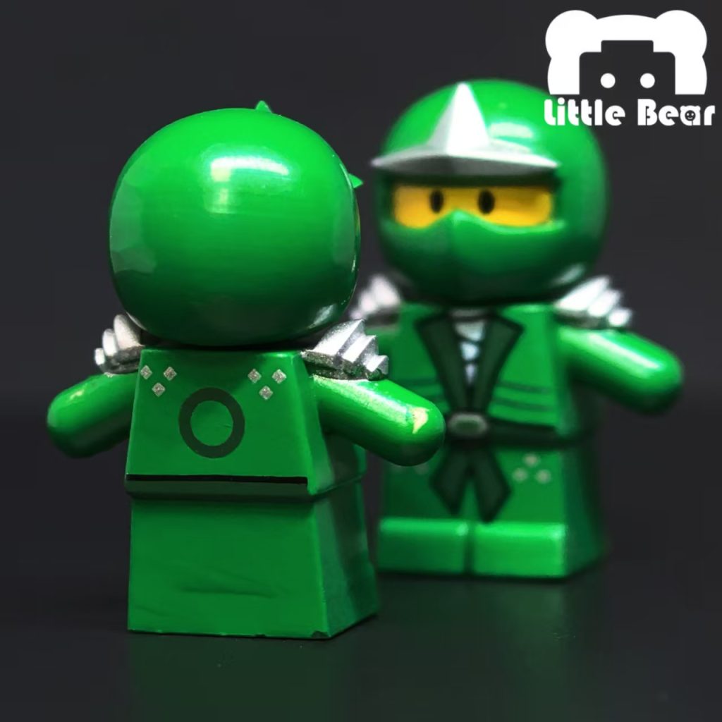 The Lloyd figure as seen in the animation, produced using pad printing and printed parts, sized to be compatible with LEGO minifigure dimensions